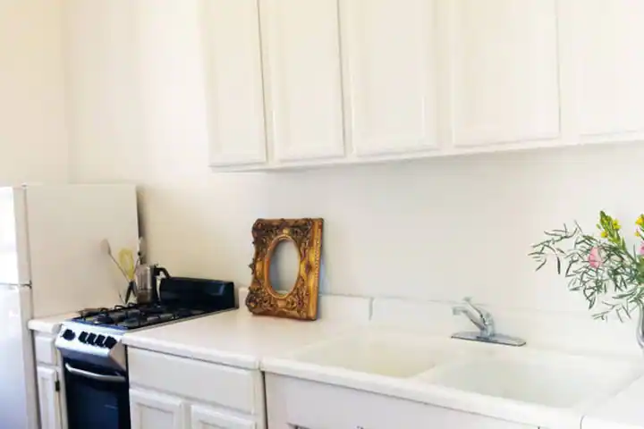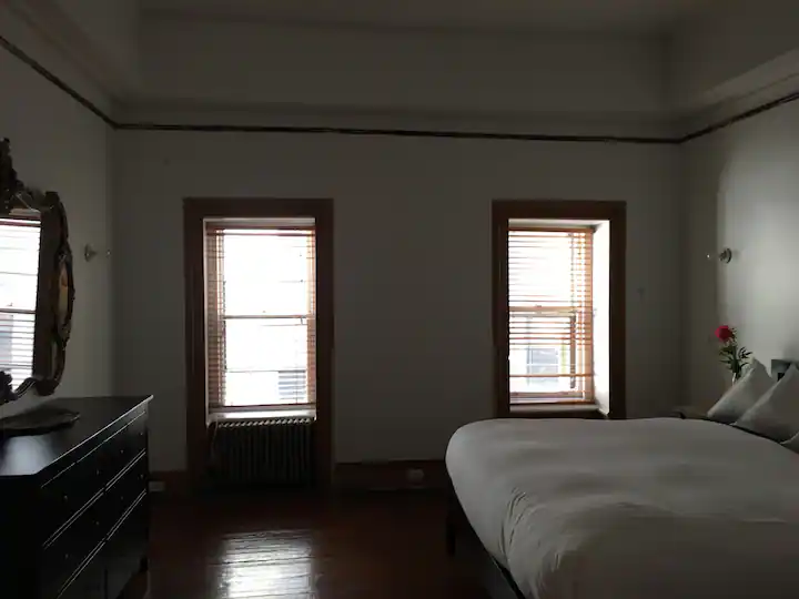 Sun bathed fully furnished oversized one bedroom with traditional bedroom, living room and separate eat in kitchen. The flat has two exposures and skylights in the hall bathroom and livingroom.